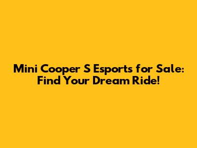 Mini Cooper S Esports For Sale: Find Your Dream Ride!