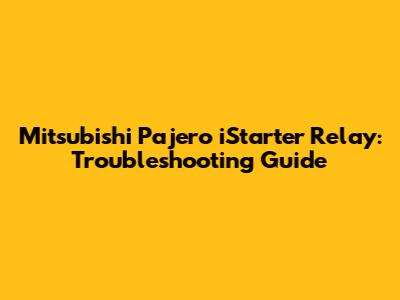 Mitsubishi Pajero IStarter Relay: Troubleshooting Guide