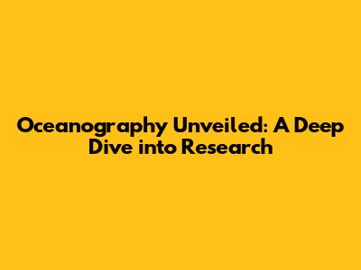 Oceanography Unveiled: A Deep Dive Into Research