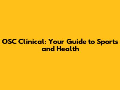 Understanding OSC Clinical Sports and Health: Your Gateway to Wellness