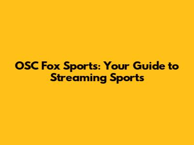 OSC Fox Sports: Your Guide To Streaming Sports