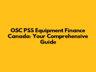 OSC PSS Equipment Finance In Canada: Your Comprehensive Guide
