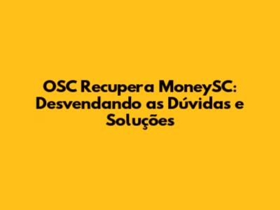 O Que é OSC Recupera MoneySC? Uma Visão Geral