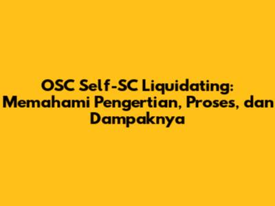 OSC Self-SC liquidating, atau likuidasi mandiri, adalah proses di mana sebuah perusahaan memutuskan untuk membubarkan dirinya sendiri. Dalam hal ini, perusahaan akan menjual semua asetnya, membayar semua utangnya, dan kemudian mendistribusikan sisa aset kepada para pemegang saham. Berbeda dengan likuidasi yang diprakarsai oleh pengadilan atau kreditur, OSC Self-SC liquidating dilakukan atas inisiatif dan keputusan dari manajemen perusahaan itu sendiri. Jadi, perusahaan mengambil kendali penuh atas proses pembubarannya.
