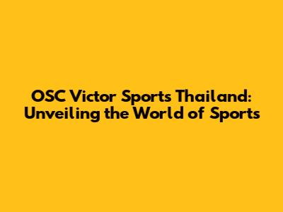 OSC Victor Sports Thailand: Unveiling The World Of Sports
