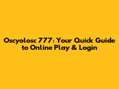 Oscyolosc 777: Your Quick Guide To Online Play & Login
