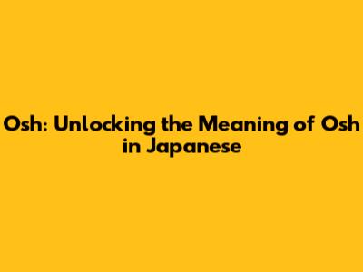 Osh: Unlocking The Meaning Of Osh In Japanese