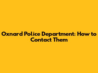 Oxnard Police Department: How To Contact Them
