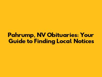 Hey there, folks! If you're looking for information on Pahrump, NV obituaries, you've come to the right place. Navigating the world of obituaries can be tough, especially when you're dealing with loss. So, let's break down how to find those notices in Pahrump, making it a bit easier to honor and remember those who've passed. We'll explore where you can find these important announcements, what kind of information they typically include, and some tips for making the process a little less overwhelming. Getting the right information can be really important, and hopefully, this guide helps you through it.