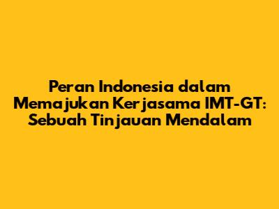 Peran Indonesia Dalam Memajukan Kerjasama IMT-GT: Sebuah Tinjauan Mendalam