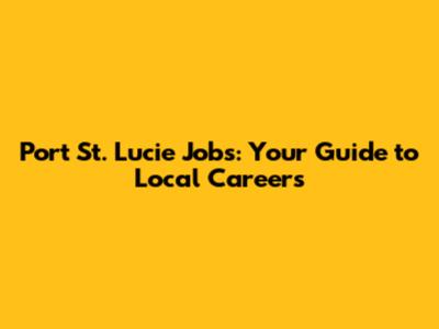 Port St. Lucie Jobs: Your Guide To Local Careers