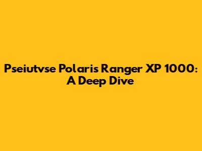 Pseiutvse Polaris Ranger XP 1000: A Deep Dive