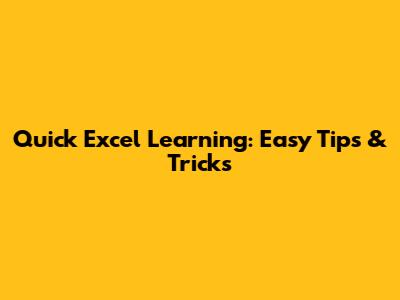 Quick Excel Learning: Easy Tips & Tricks