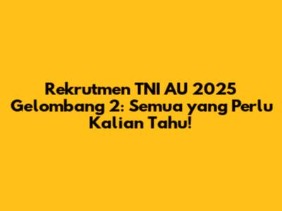 Alright, guys! Jadi, kalian tertarik buat bergabung dengan Tentara Nasional Indonesia Angkatan Udara (TNI AU) melalui Rekrutmen TNI AU 2025 Gelombang 2? Keren banget! Ini kesempatan emas buat kalian yang punya jiwa patriotik dan pengen berkarier di dunia penerbangan. Artikel ini bakal jadi panduan lengkap buat kalian semua, mulai dari syarat-syaratnya, jadwal penting, tahapan seleksi, hingga tips jitu biar bisa lolos. Yuk, simak baik-baik!