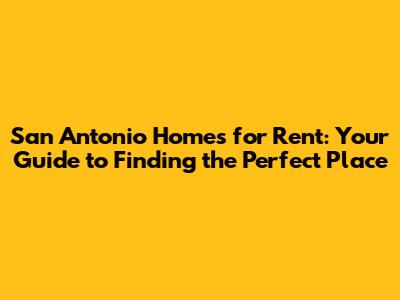 San Antonio Homes For Rent: Your Guide
