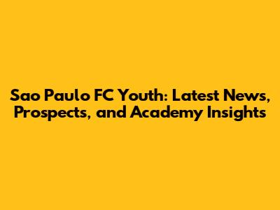 Sao Paulo FC Youth: Latest News, Prospects, And Academy Insights