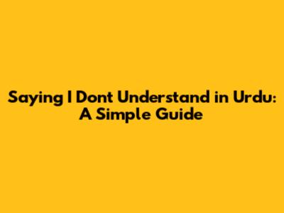Saying I Don't Understand In Urdu: A Simple Guide