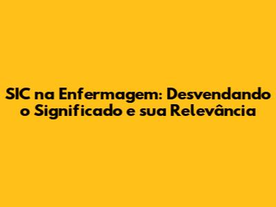 SIC Na Enfermagem: Entenda O Significado E Importância