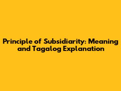 Subsidiarity Principle: Meaning And Tagalog Explanation