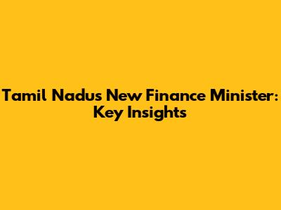 Tamil Nadu's New Finance Minister: Key Insights