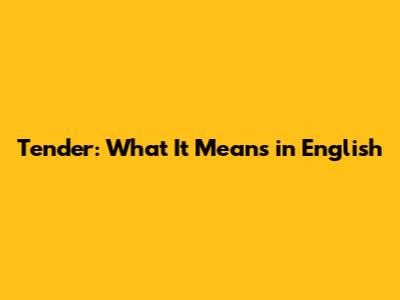 Tender: What It Means In English