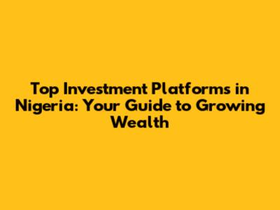 Top Investment Platforms in Nigeria