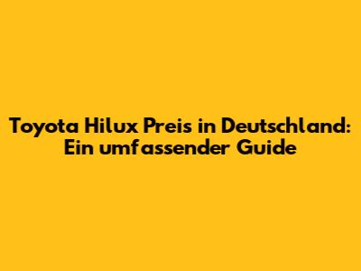 Toyota Hilux Preis In Deutschland: Ein Umfassender Guide