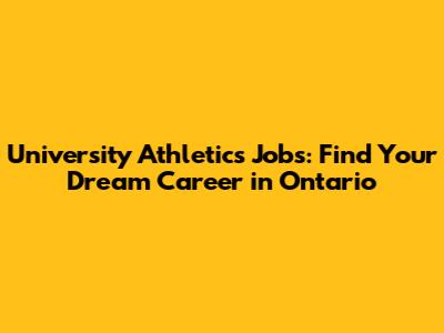 University Athletics Jobs: Find Your Dream Career In Ontario