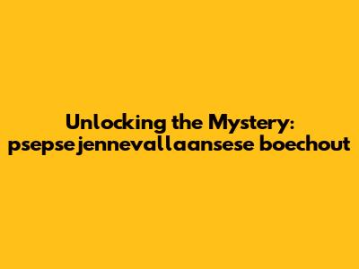 Unlocking The Mystery: Psepsejennevallaansese Boechout