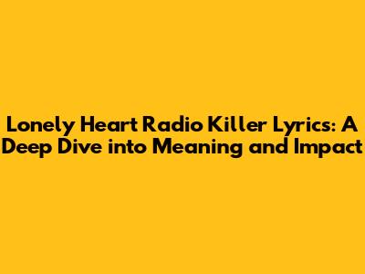 Hey music lovers! Ever gotten chills down your spine from a song? Well, let's talk about the Lonely Heart Radio Killer lyrics. This track isn't just a catchy tune; it's a deep dive into the human psyche, exploring themes of loneliness, desperation, and the dark corners of the soul. Seriously, guys, buckle up because we're about to dissect every line, every nuance, and uncover the haunting story woven within.
