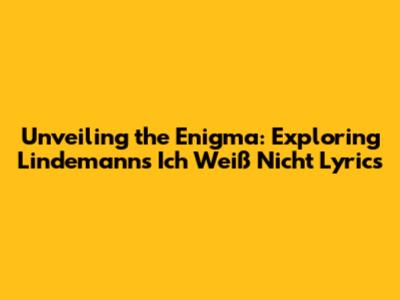 Unveiling The Enigma: Exploring Lindemann's 'Ich Weiß Nicht' Lyrics