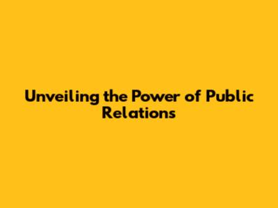 Unveiling The Power Of Public Relations