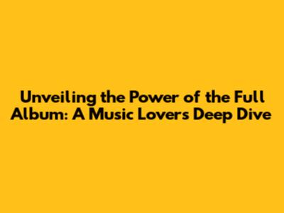 Unveiling The Power Of The Full Album: A Music Lover's Deep Dive