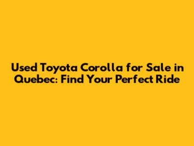 Used Toyota Corolla For Sale In Quebec: Find Your Perfect Ride