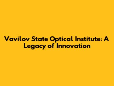 Vavilov State Optical Institute: History & Innovations
