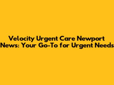 Velocity Urgent Care In Newport News: Your Quick Guide