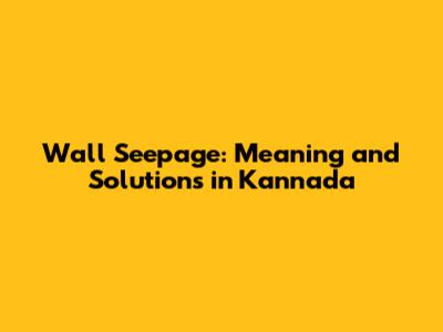 Wall Seepage: Meaning And Solutions In Kannada