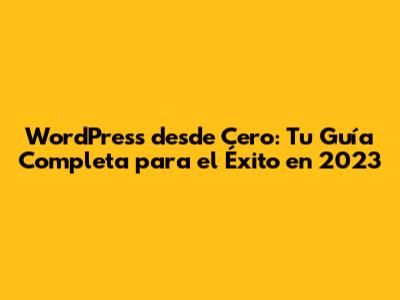WordPress Desde Cero: Tu Guía Completa Para El Éxito En 2023